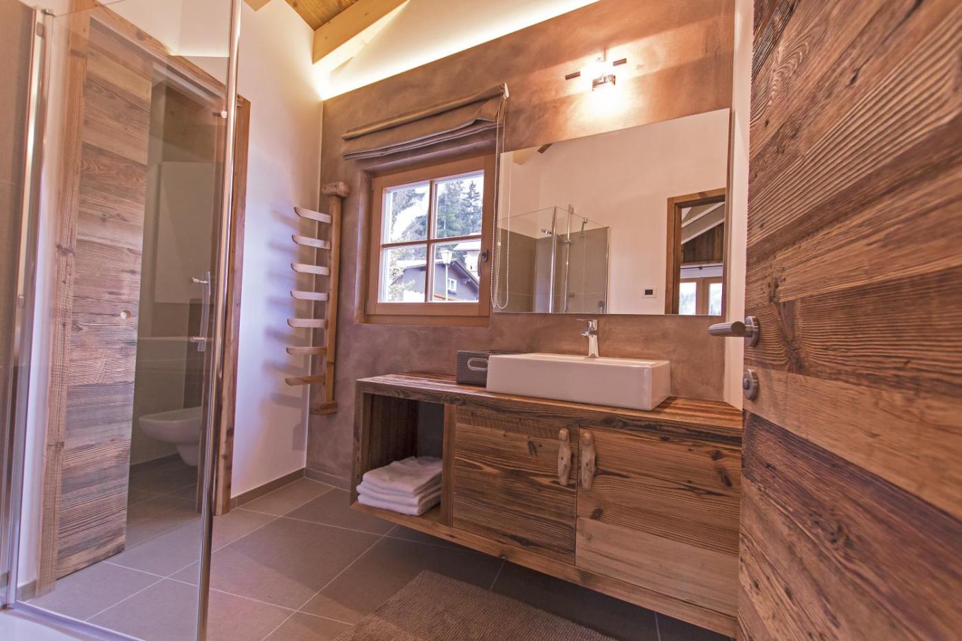 Chalet (8 Adults). The sauna and fireplace are the special features of this chalet. Boasting 4 bedrooms, this spacious chalet has 4 bathrooms with a bath, a seating area and terraceyou can relax. Guests can make meals in the kitchen that features a stovetop, a refrigerator, a dishwasher and kitchenware. The chalet features a flat-screen TV, a washing machine, a wardrobe, a safe deposit box as well as mountain views. The unit offers 4 beds. ;