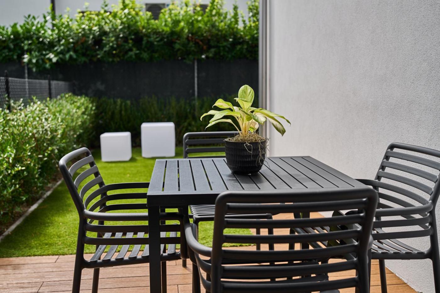 Studio with Garden View. In the well-equipped kitchenette, guests will find a stovetop, a refrigerator, a dishwasher and kitchenware. This air-conditioned studio features a desk, an outdoor dining area, garden views and a private bathroom. The unit offers 1 bed. ;