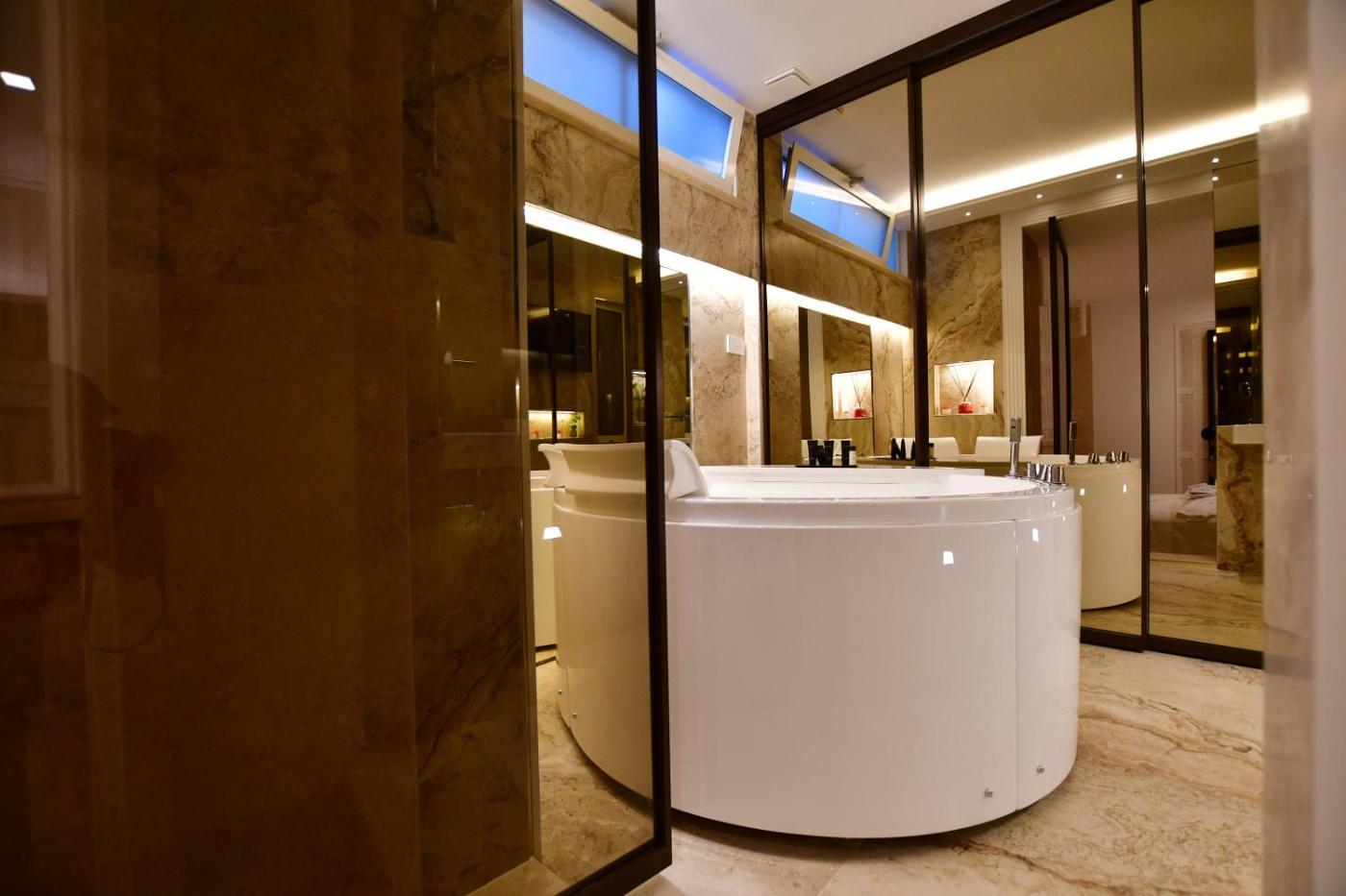 Suite with Hot Tub. Guests will have a special experience as the suite provides a hot tub. Featuring a private entrance, this air-conditioned suite consists of 1 living room, 1 separate bedroom and 1 bathroom with a walk-in shower and a bath. This suite features soundproof walls, a minibar, flat-screen TV with cable channels, as well as winechampagne for guests. The unit offers 1 bed. ;
